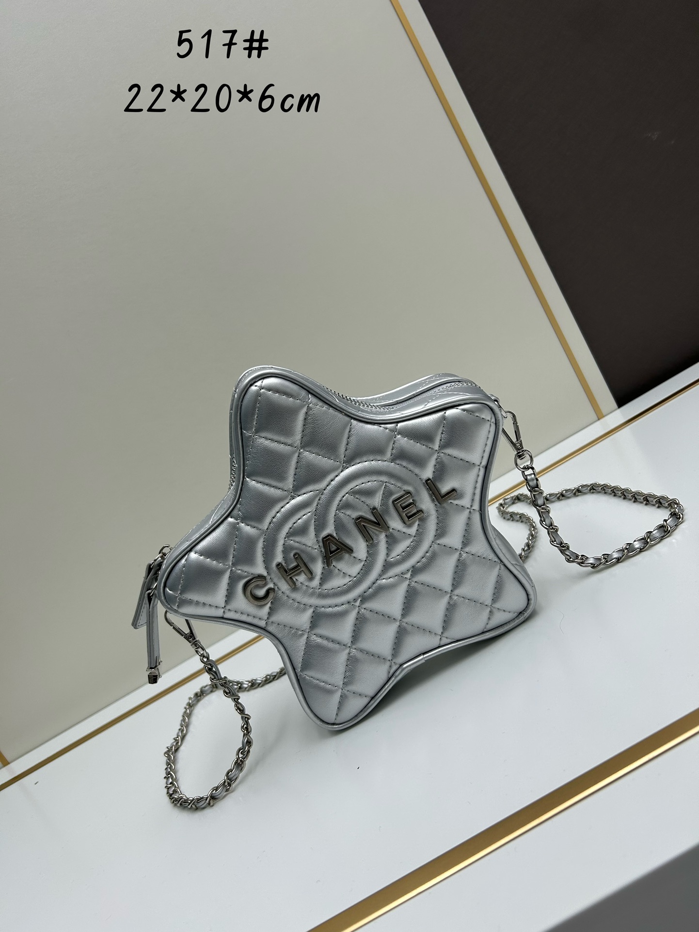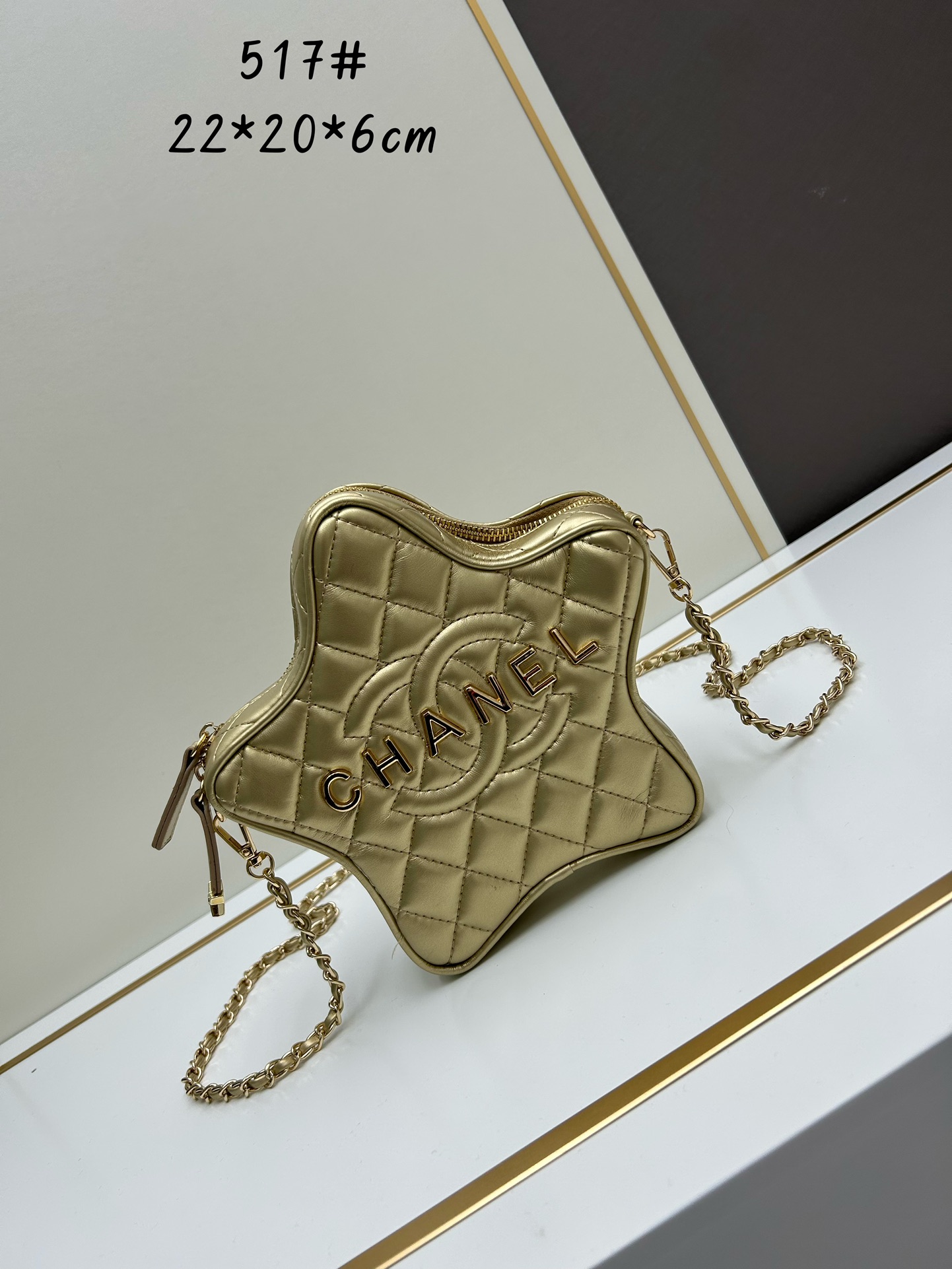 New batch 💰270🔥🔥Lucky Star Chanel CHANEL five-pointed star shoulder bag crossbody bag 🎠🎠Amazing, Jimei! |||The star bag is just like the shining stars in the sky, dazzling [Frown R][Frown R] The golden appearance is dazzling~ The high-end and luxurious texture is also so beautiful~ The unique star-shaped design is both cute and Without losing wealth [Drinking Milk Tea R] [Drinking Milk Tea R] [Drinking Milk Tea R] Wearing it on her back can make girls have a unique daughter-in-law style. Dimensions: bottom 15x bag opening 22x height 20×6, style number 517