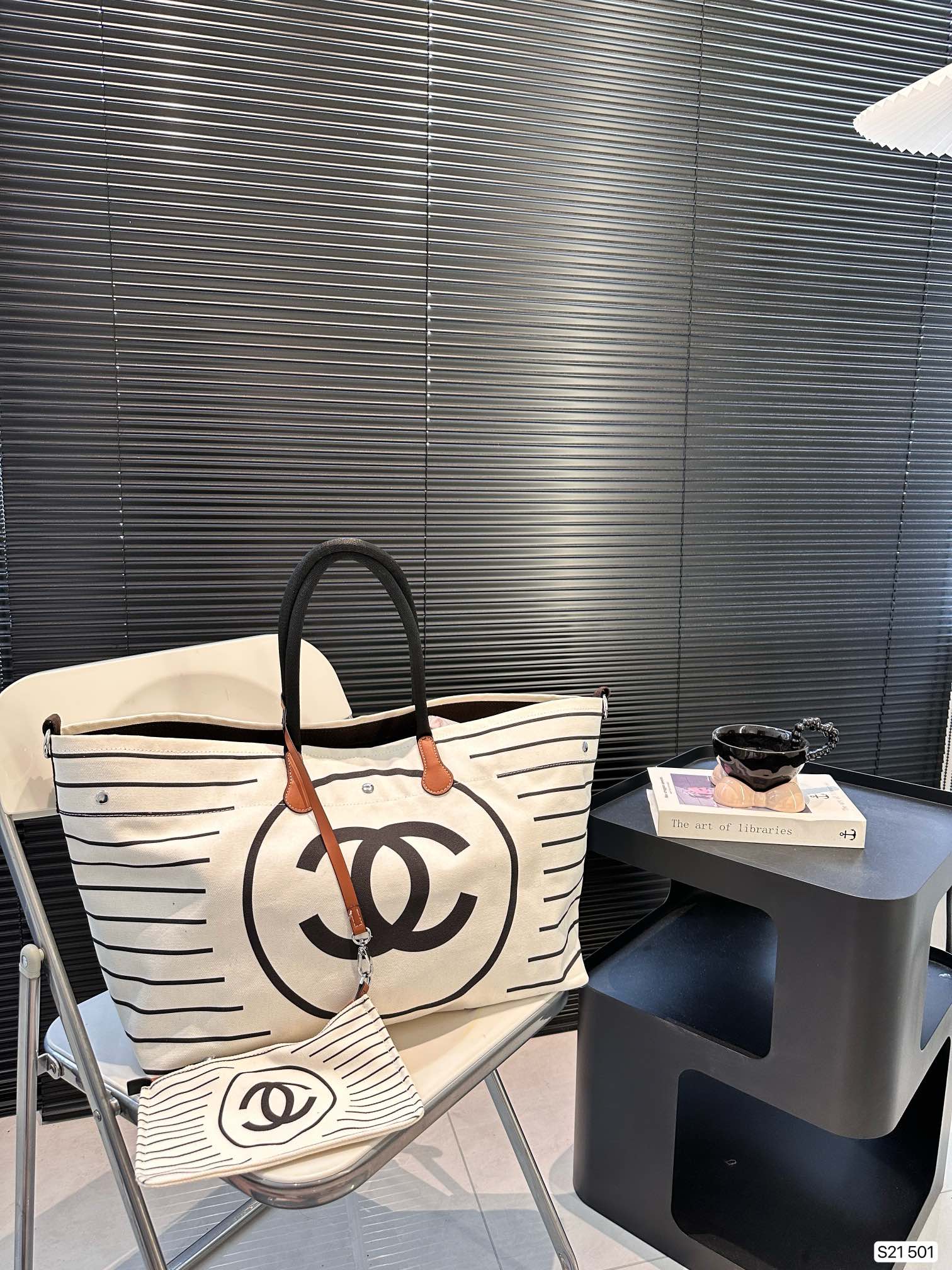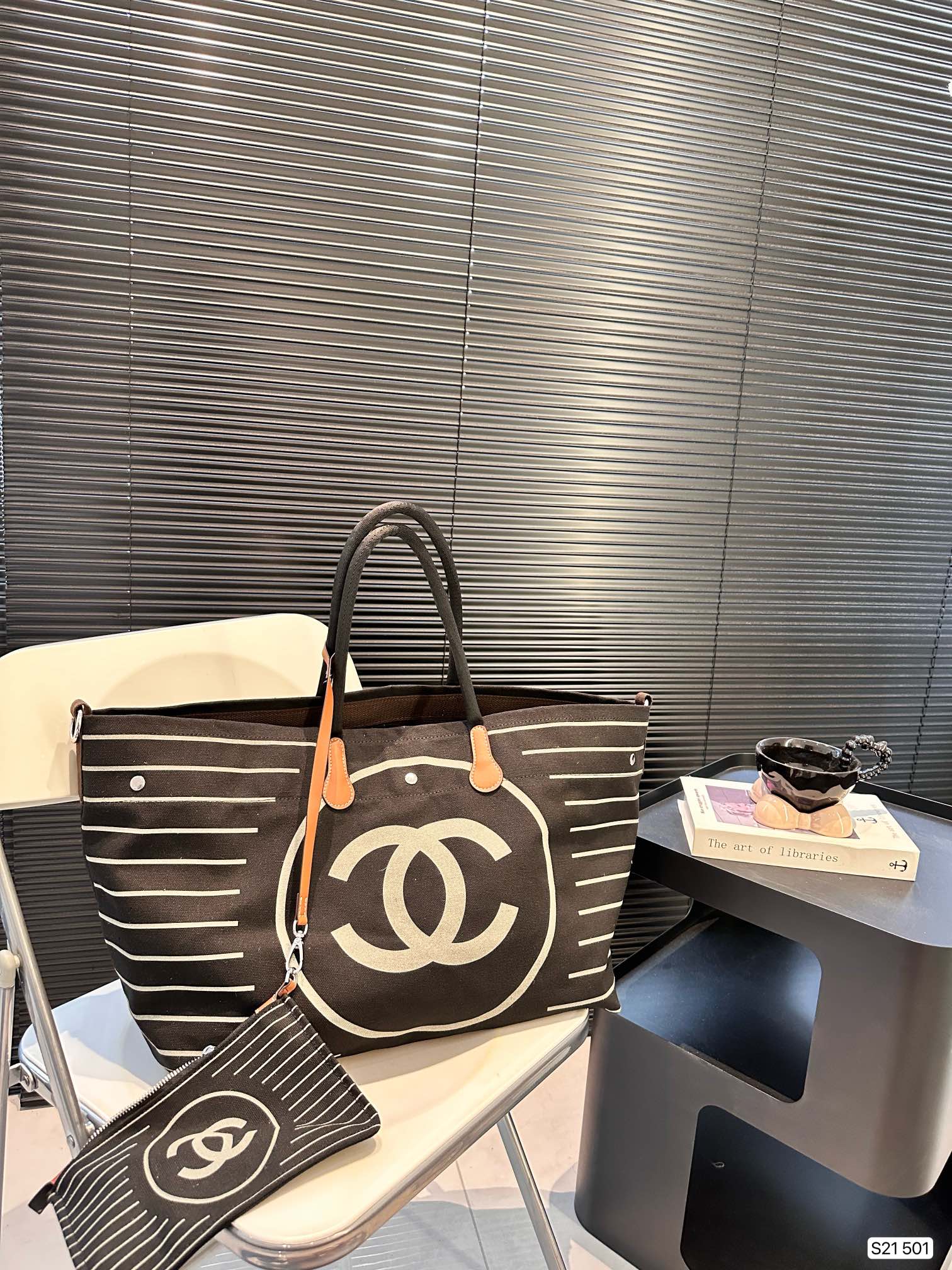 Chanel Handbags Tote Bags Black White Canvas Fashion