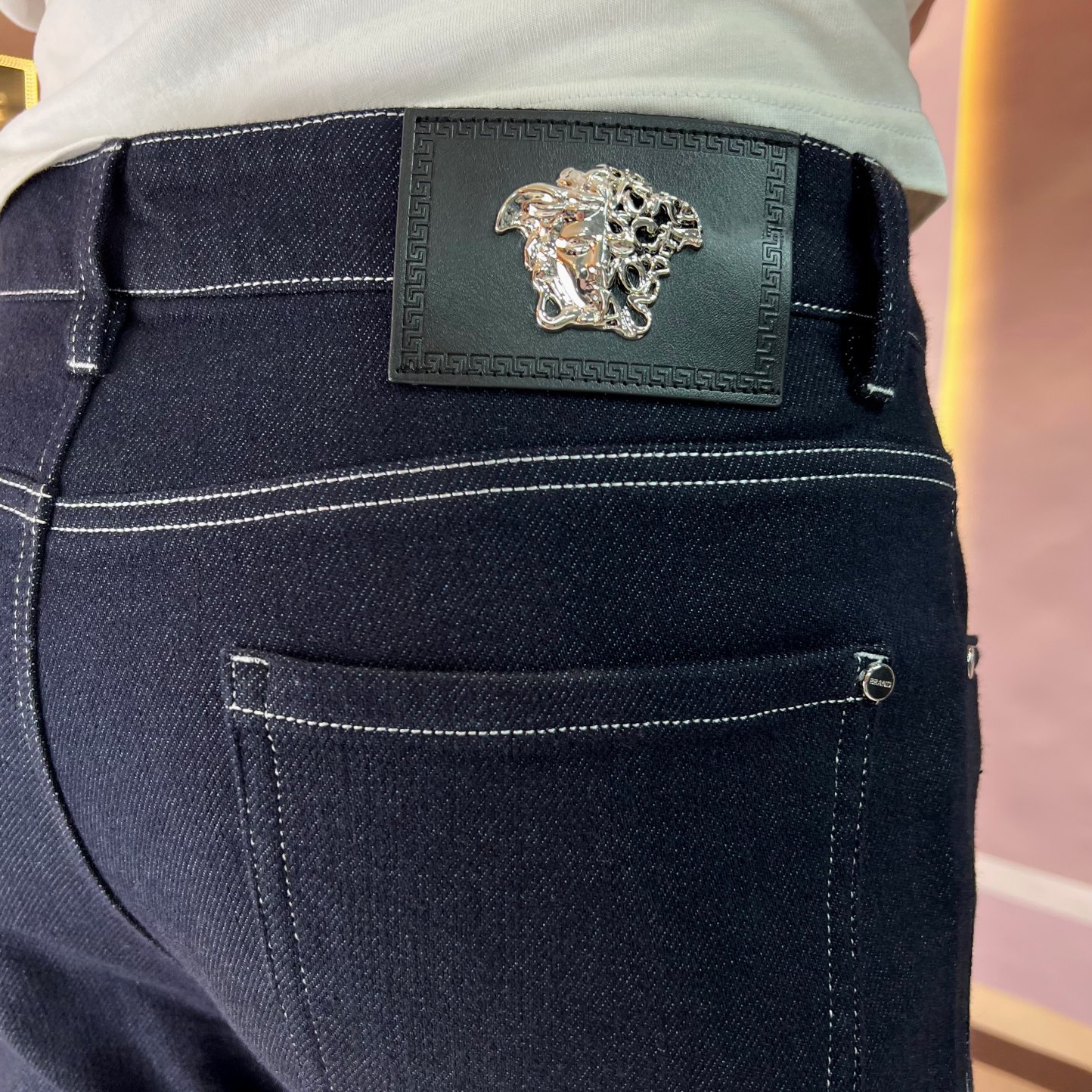 P250 Versace 2023 new autumn and winter men’s jeans. The fabric has good elasticity. Adopt original color yeast washing process, select imported heavyweight denim denim fabric, equipped with counter hardware decoration, genuine leather leather label, exquisite stitching, worth owning 29-38